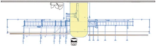 Гидравлический подъемный стол установлен перед подающим поперечным конвейером. Штабеля пиломатериалов могут быть размещены на подъемном столе и подняты на нужную высоту. Это позволяет непрерывно подавать пиломатериалы вровень с подающим поперечным конвейером.