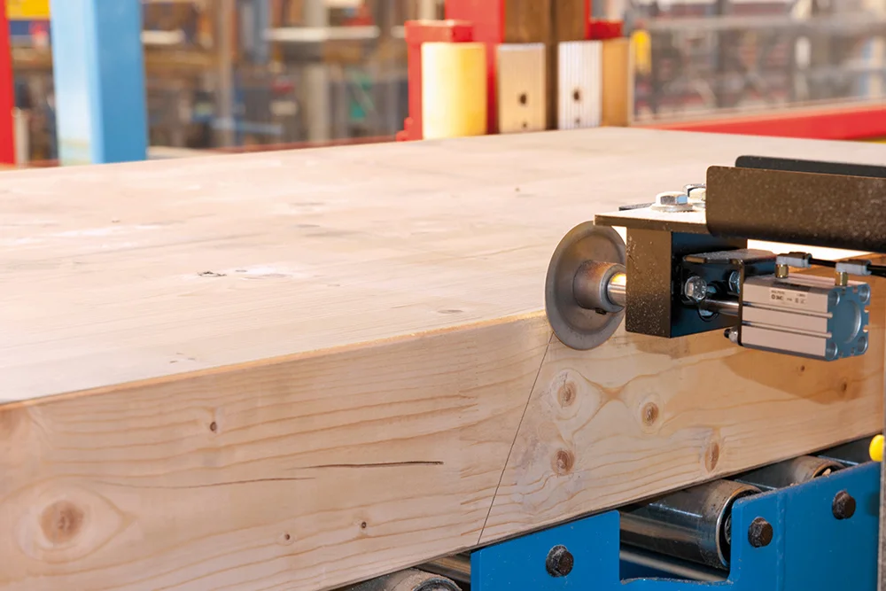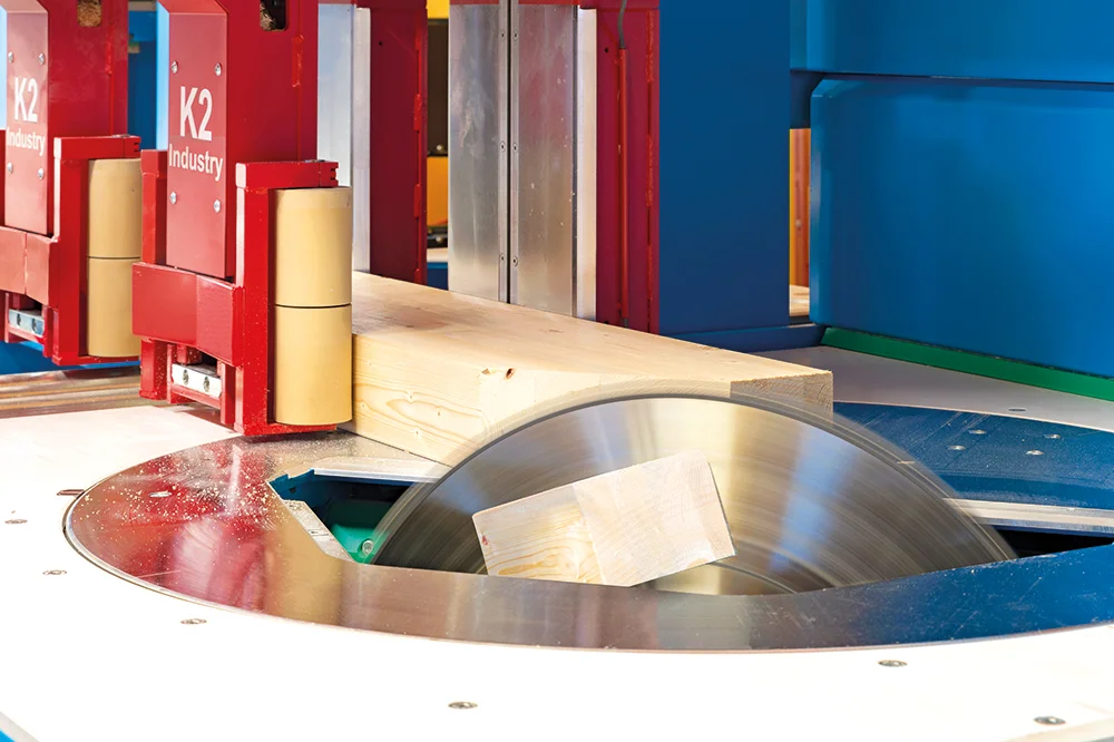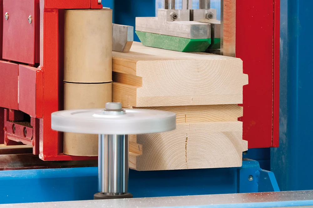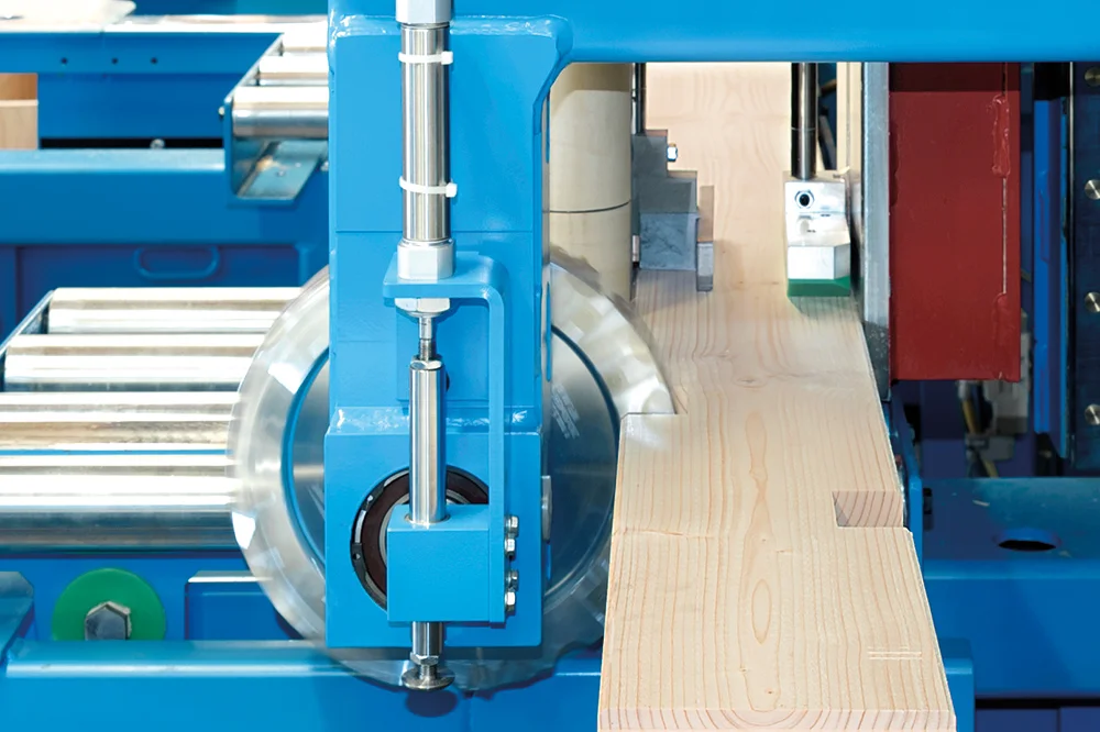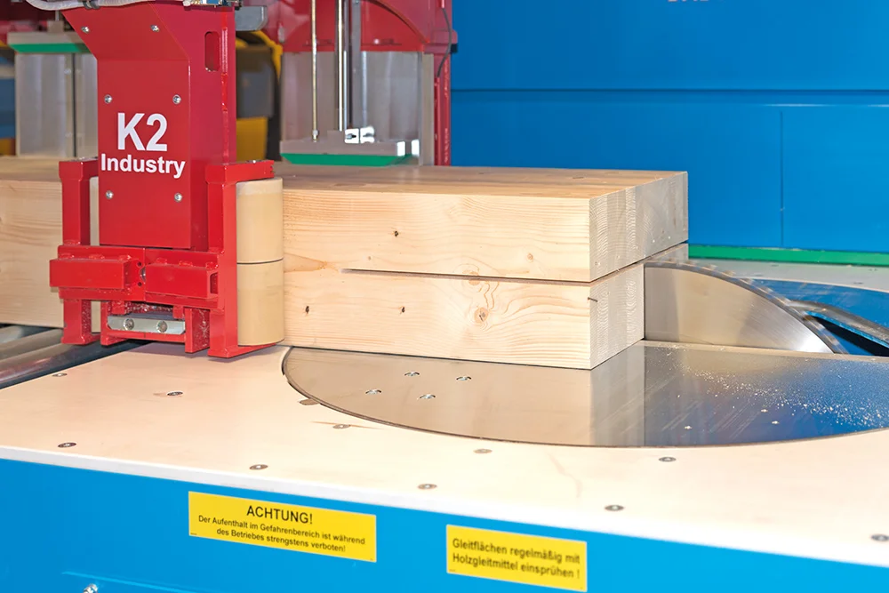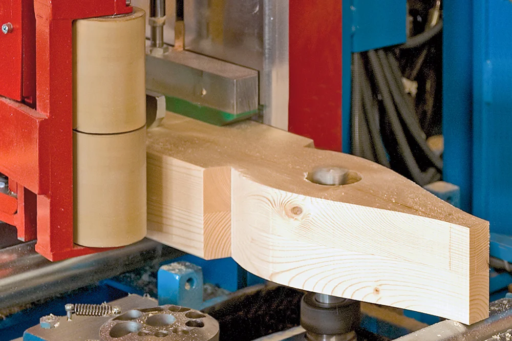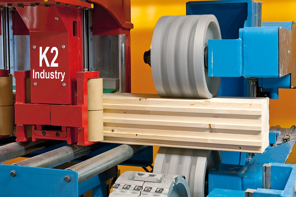 Революционная система Позиционирования заготовок K2-Industry с двумя зажимными каретками фиксирует древесину непосредственно в зоне обработки. Это обеспечивает максимальную точность даже при обработке слегка изогнутых заготовок, оцилиндрованного и профилированного бруса. Тавровые сечения и штабелированные заготовки также обрабатываются без необходимости переоборудования станка.