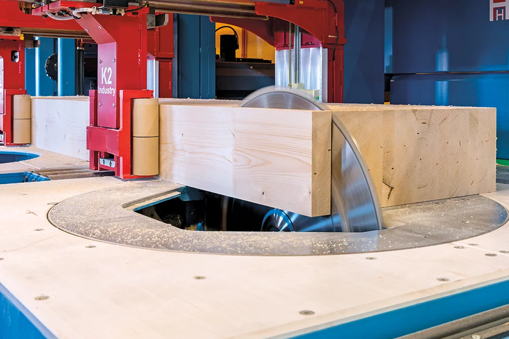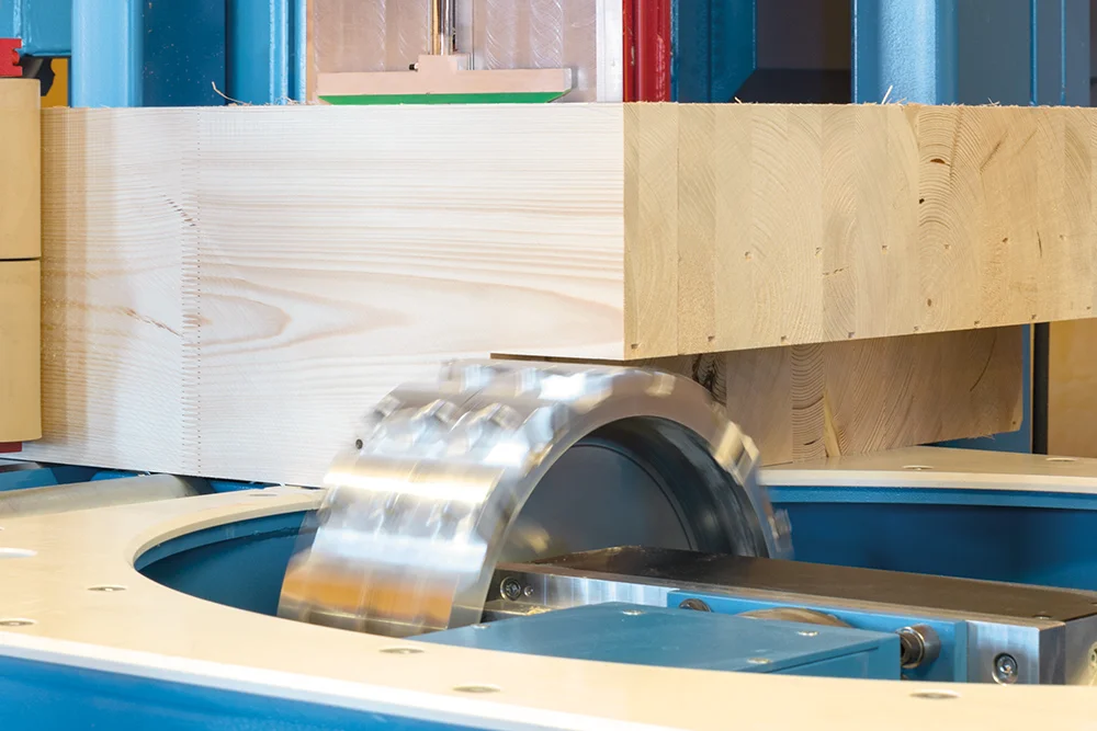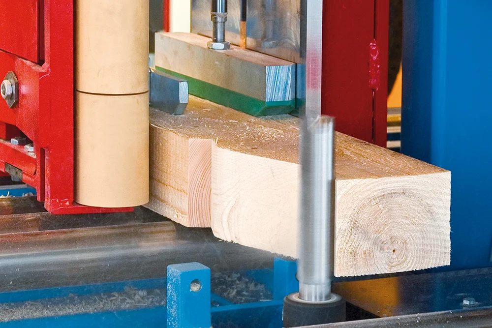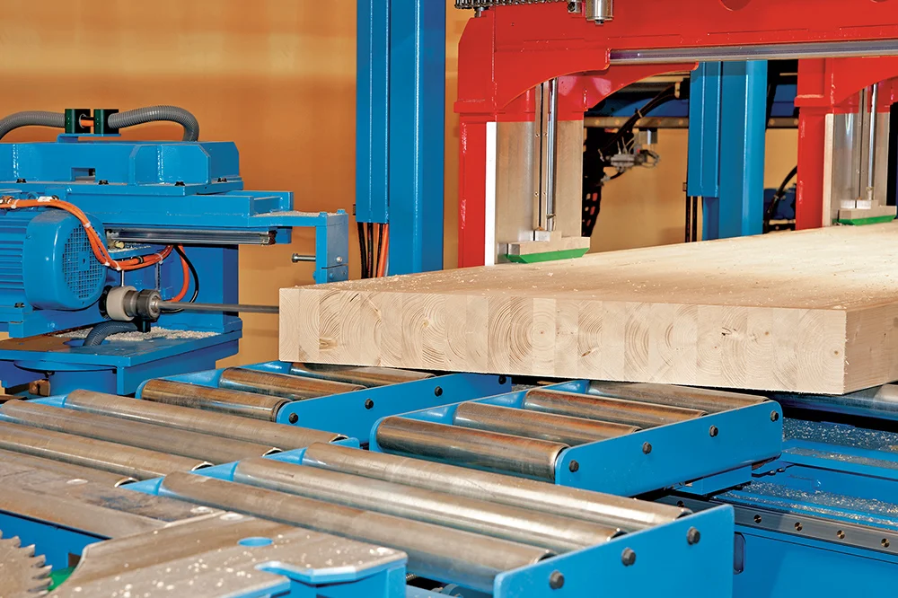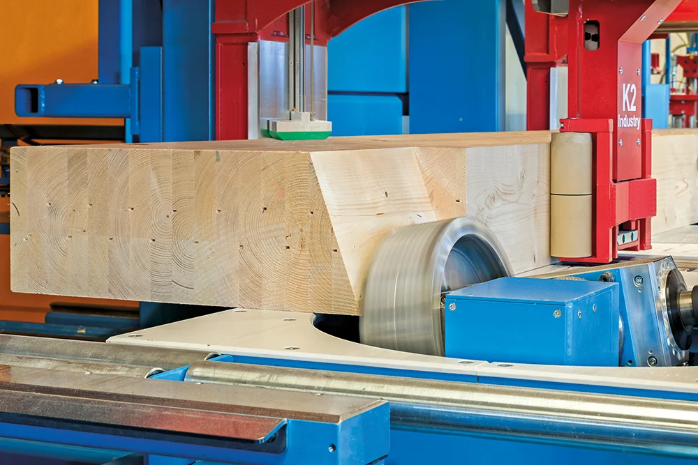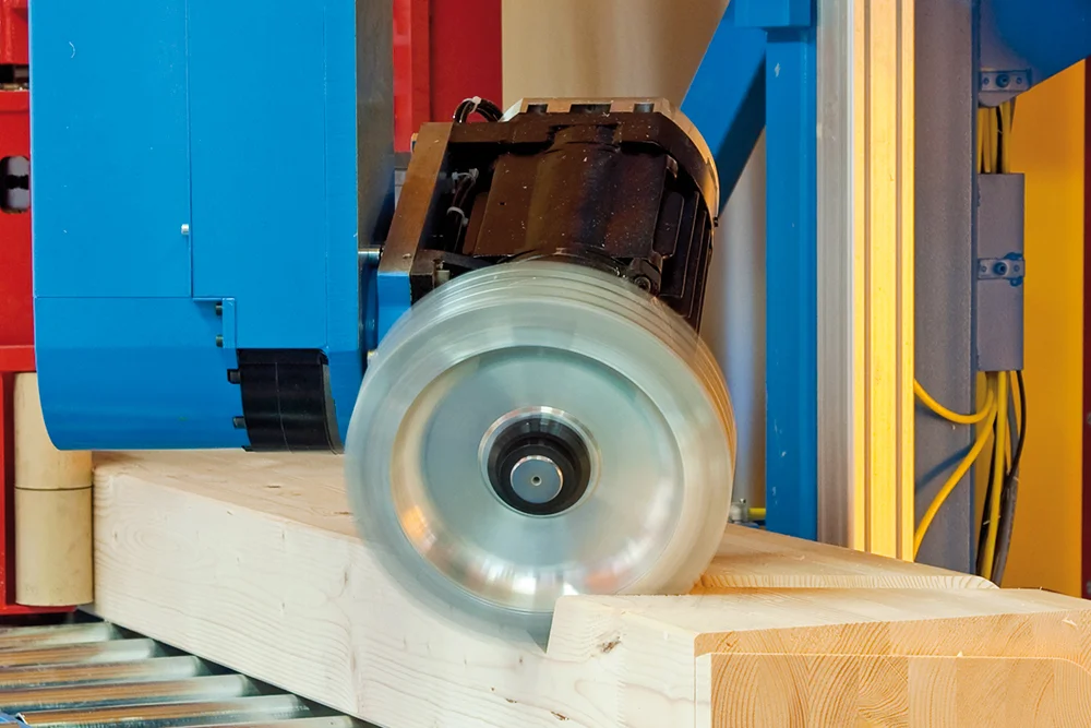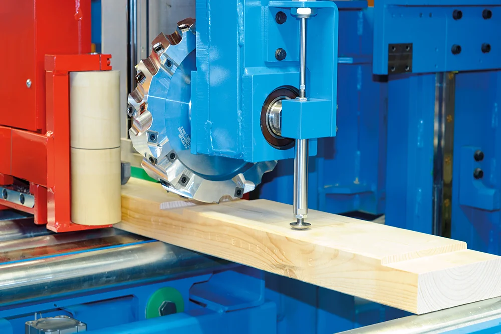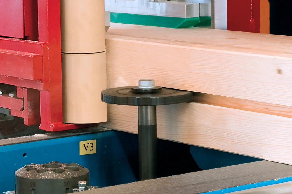 Революционная система Позиционирования заготовок K2-Industry с двумя зажимными каретками фиксирует древесину непосредственно в зоне обработки. Это обеспечивает максимальную точность даже при обработке слегка изогнутых заготовок, оцилиндрованного и профилированного бруса. Тавровые сечения и штабелированные заготовки также обрабатываются без необходимости переоборудования станка.
