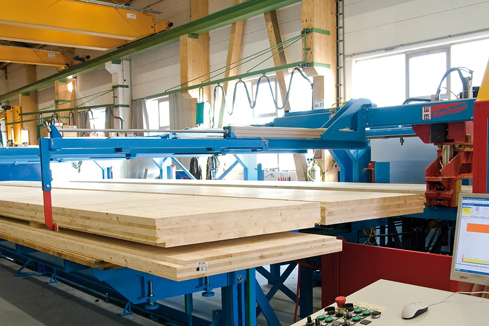 При ширине обработки 1300 мм станок K2-Industry предлагает высокопроизводительное решение для стыковки деталей.Для обработки все CLT панелей и широких клееных балок требуются агрегаты, идеально соответствующие этим требованиям. С появлением станка K2-Industry для этих целей были разработаны специальные агрегаты. Например, вертикальная и горизонтальная фреза с револьверной головкой, горизонтальная пила, поворотный сверлильный станок для сверления глубоких отверстий или специальные фрезы для нарезания пазов, которые позволяют полностью удовлетворить требования, предъявляемые к строительным деталям. Концепция K2-Industry обеспечивает одновременную 6-стороннюю обработку — гарантируется максимальная экономическая эффективность.