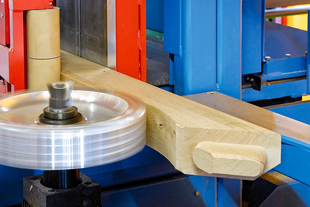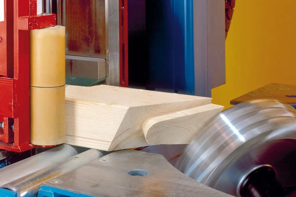 Оцилиндрованный и профилированный брус, Тавровые сечения и штабелированные заготовки также обрабатываются без необходимости переоборудования станка.
