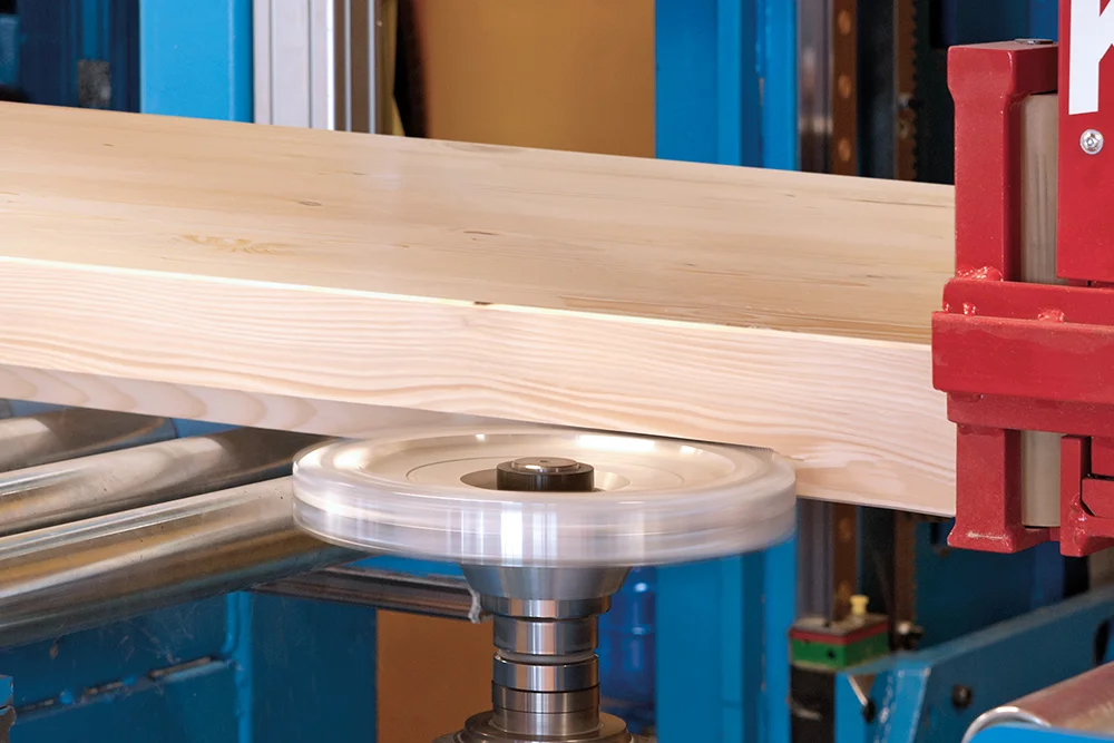 Универсальный обкатной фрезер был разработан специально для выполнения типичных операций в каркасном производстве, таких как обработка пазов и разметка на прогонах.