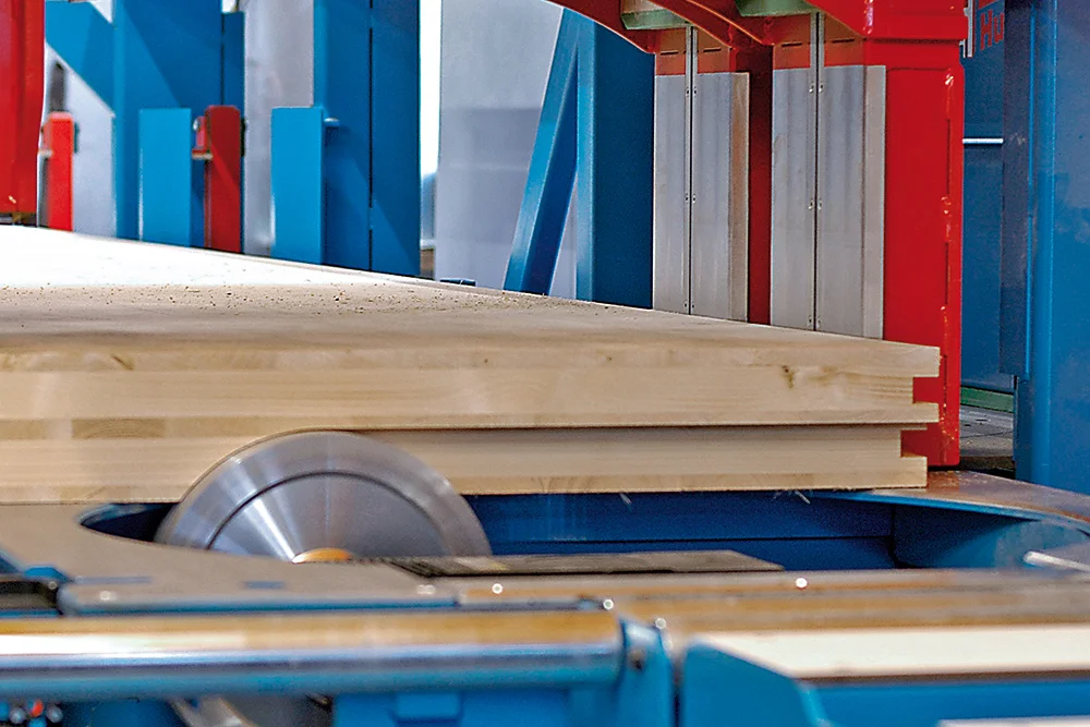 Помимо изготовления высокоточных пазов, горизонтальная пила может также использоваться для изготовления больших пазов. Благодаря продуманному взаимодействию горизонтальной пилы и 5-осевого круглопильного агрегата теперь можно выполнять большие пазы (а не фрезеровать их) за еще более короткий промежуток времени. Размер получаемых кусков-обрезков можно адаптировать с учетом установленной системы утилизации отходов.