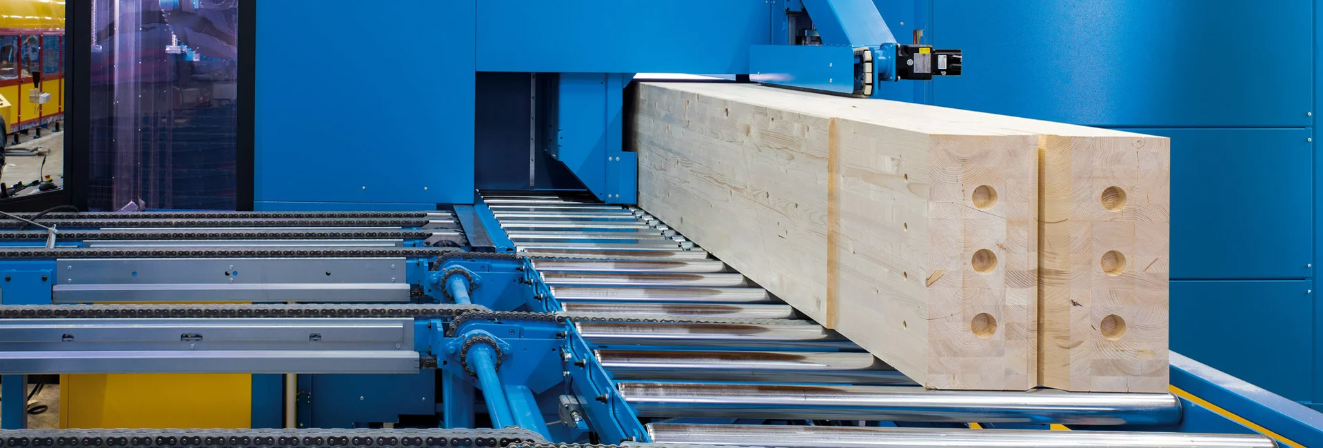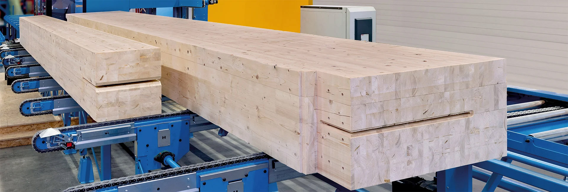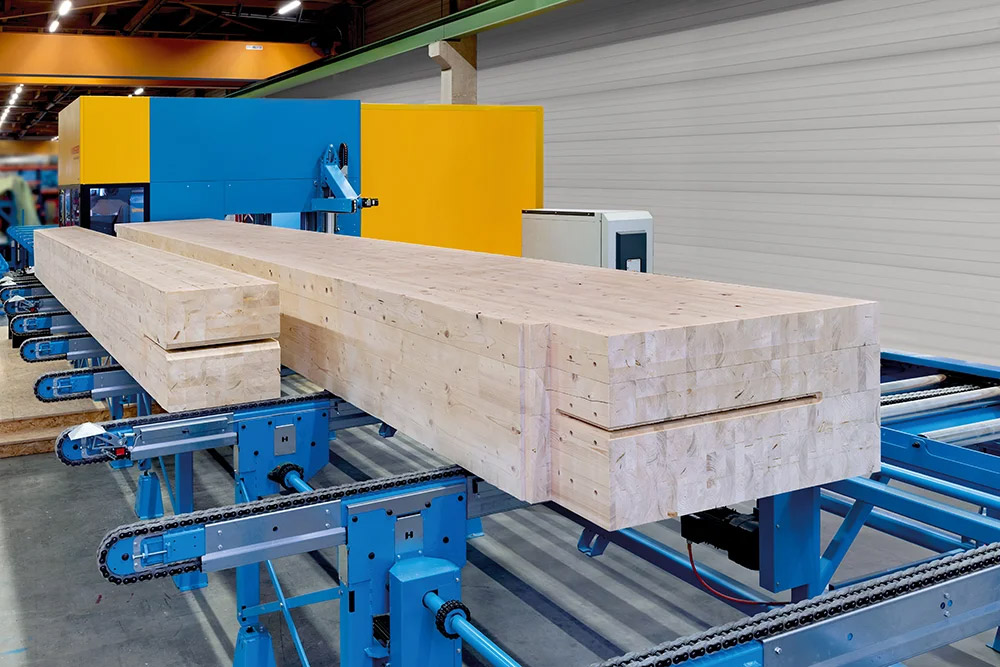 — Автоматическое выравнивание пиломатериалов еще большего размера на линии O-line.